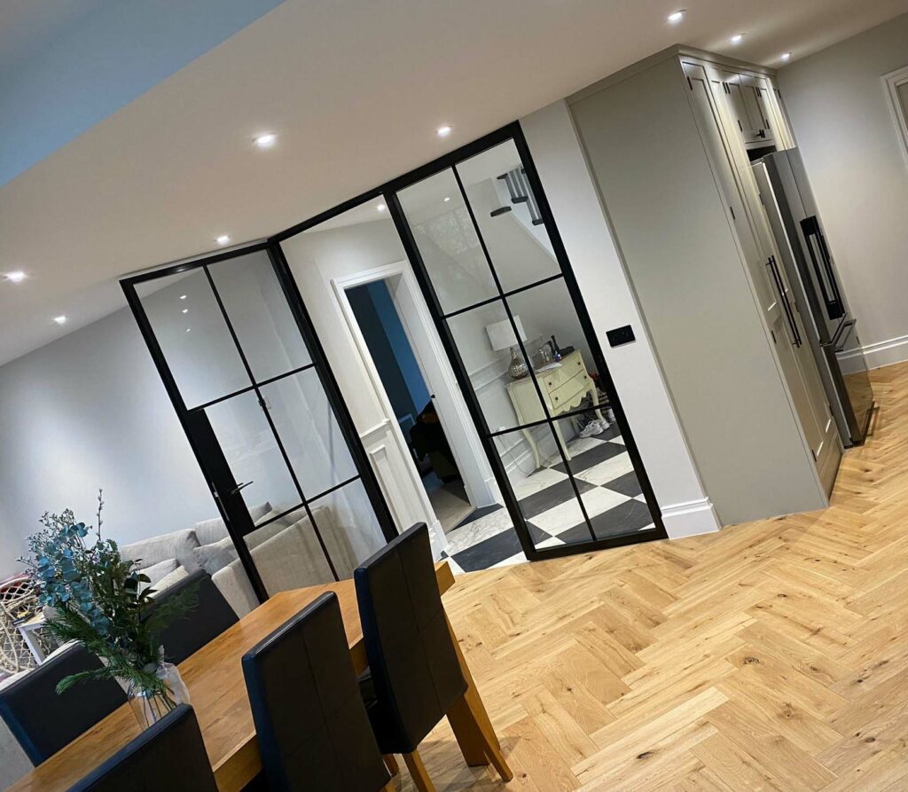 Whether you want to partition a room or bring the outside in our bespoke traditional metal doors, and internal partitions can effortlessly transform your living space, creating a room filled with natural light and modern elegance.