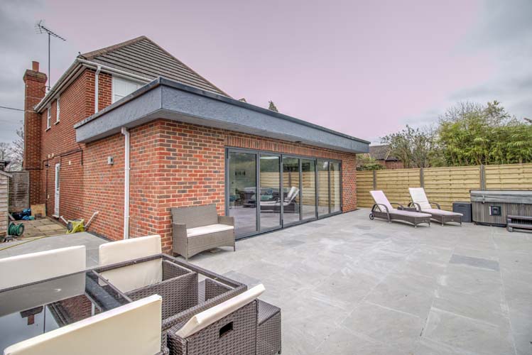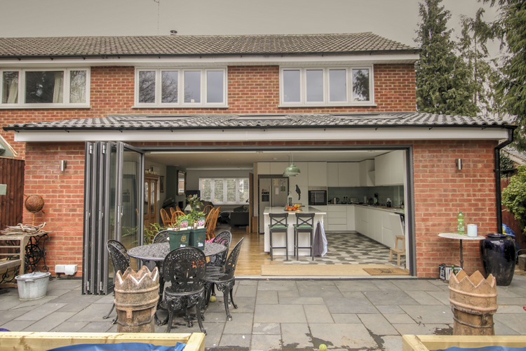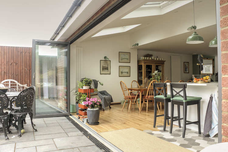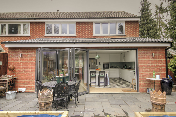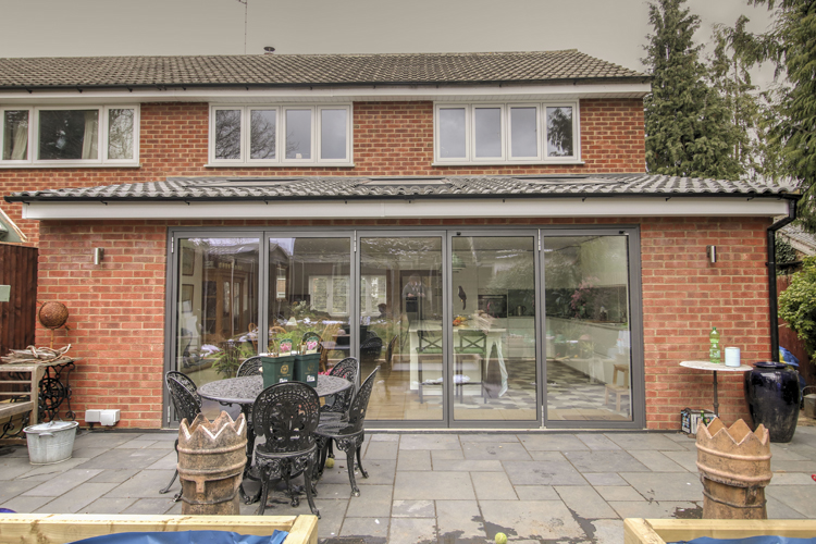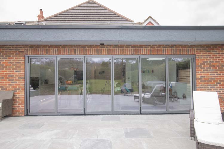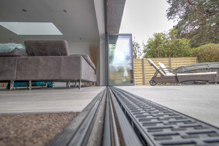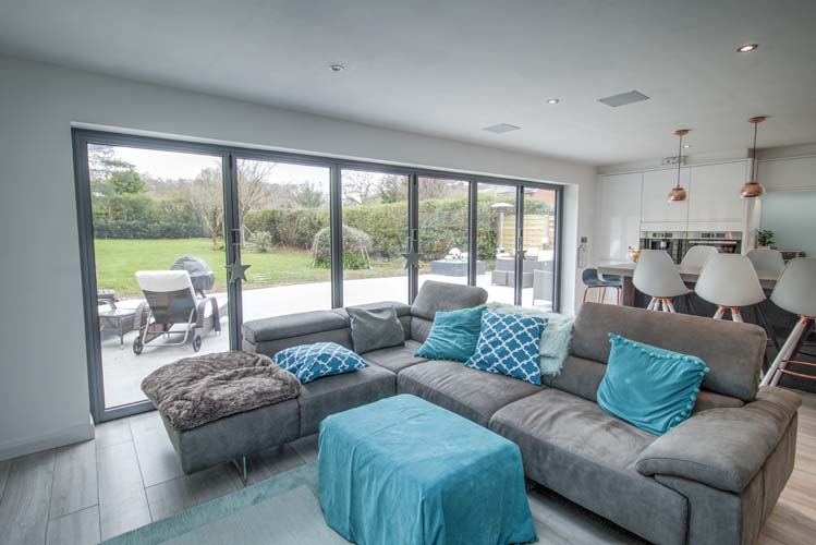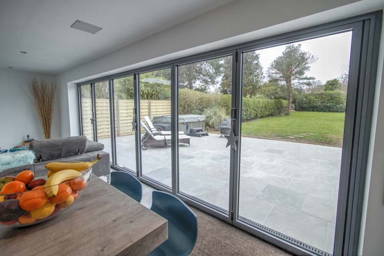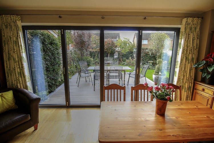 The Ecoline bifolding doors offer complete versatility. Add fixed top lights to achieve even greater heights and allow even more light in, combine with tilt & turn panels or corner elements for true panoramic views.
