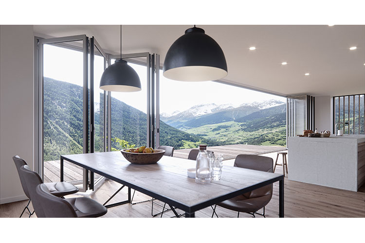 The SL 60e aluminium bifold glass door offers a huge range of installation options. Despite the fact that it more than fulfils the rigorous requirements of the German energy saving...