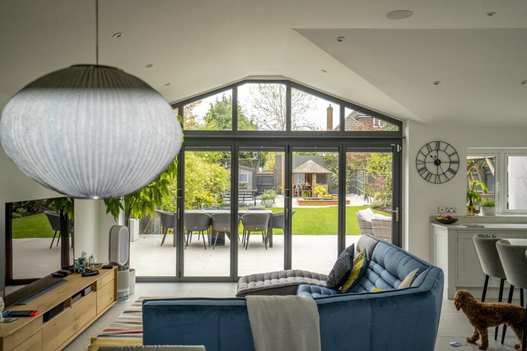 Bi-folding patio doors in Surrey and Hampshire are a favourite choice for clients looking for a modern aesthetic style combined with outstanding functionality and practicality.