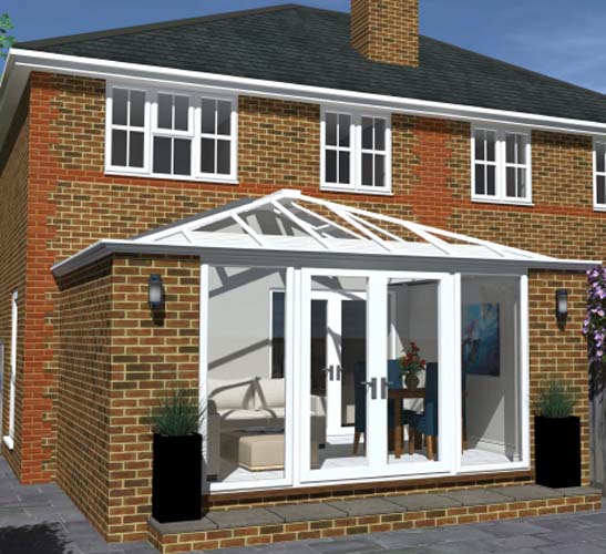 A Livin Room is essentially an Orangery but without a flat roof. This means they are quicker to build and therefore more competitively priced. You benefit from the light of a conservatory, with the walls and ceiling of an extension.