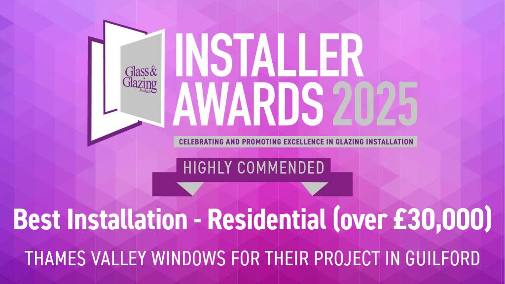 We are delighted to announce that this minimalist sliding door project in Guildford won Highly Commended ‘Best installation – residential (over £30,000)’ atGGP25 Installers Award