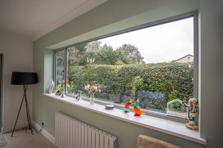 We did not install trickle vents to the agate grey aluminium windows and doors as the homeowners chose an alternative means of passive ventilation. Their desire for a more energy-efficient and aesthetically pleasing solution guided their decision. The preferred method ensures a constant supply of fresh air, maintaining a healthy indoor environment without compromising the sleek design of the windows and doors.