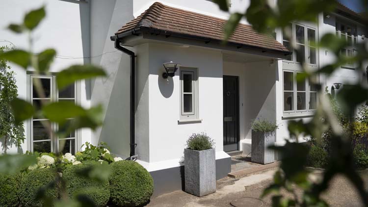 As part of this home renovation project, we designed and installed contemporary Agate grey Heritage-style windows and doors at the property. The Oxshott homeowners were keen to coordinate their roofline with their new double-glazed windows and doors.