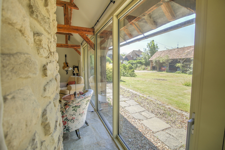 This project focused on enhancing an old barn conversion in Abingdon where we installed aïr LS500 Glass Sliding Doors. The owners had used old glass doors from another part of their property when converting the barn some years ago. They approached our designers to suggest how to enhance their living room with new double glazing, addressing the climate problems they were encountering, especially from extreme weather.
