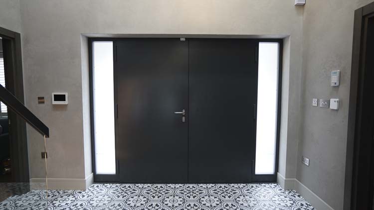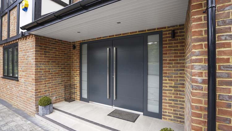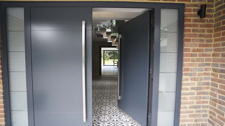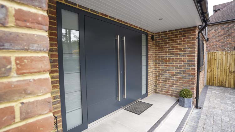 After viewing the range of Pirnar front doors on display in our Bracknell showroom, the Weybridge homeowners opted for a double door design of two Pirnar Optimum Front doors (Model 8211) with two glazed side panels to allow natural light to flood into the hallway.