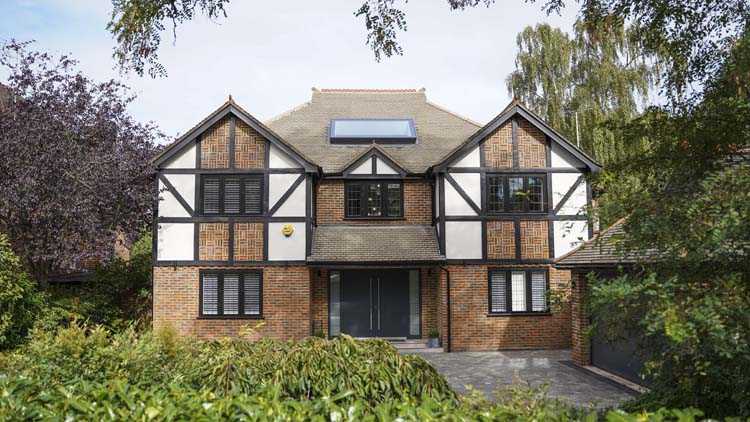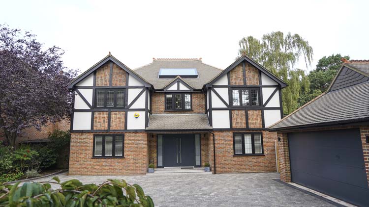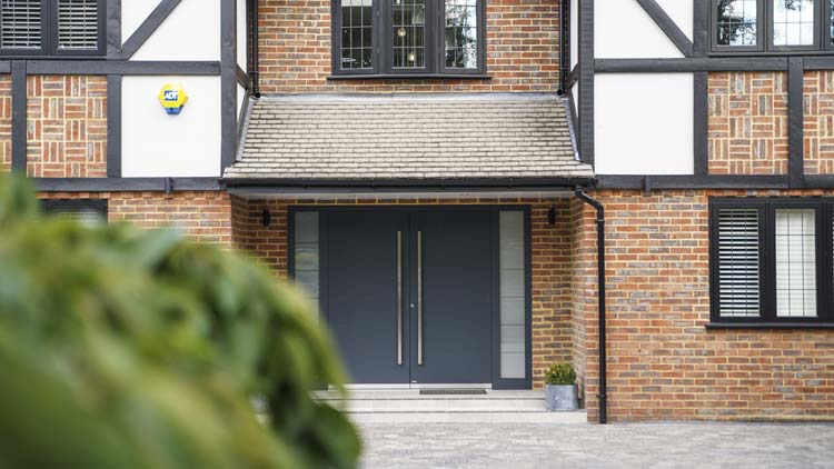 A grand entrance of aluminium double door and sidelights has transformed this beautiful Mock Tudor detached property in Weybridge.