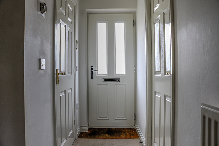 A Apeer composite front door in Warfield was chosen. The door is finished in a smart grey colour on the outside (RAL 7016) and white on the inside which makes the hallway nice and bright. Chrome door furniture and a smart black hardwood sill complete the look. Two triple glazed panels with satin glass allow light to flood in without comprising privacy or security.