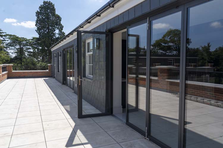 Cholbury Place is an exclusive, crescent-shaped development of eighteen highly desirable, luxurious apartments in Ascot, featuring a bespoke glazing solution that includes double-glazed uPVC sliding sash windows, Ecoline bi-folding doors, AirMOD aluminium windows and doors, and four white roof lanterns, each working in harmony to create light-filled, luxurious apartments and penthouses with modern living spaces.
