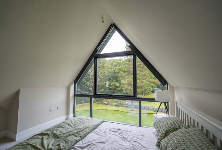 The Annex boasts a huge gable end window with Solarlux Ecoline bi-folding doors that create a wow factor to the living space inside and outside and a seamless transmission between indoors and outdoors.