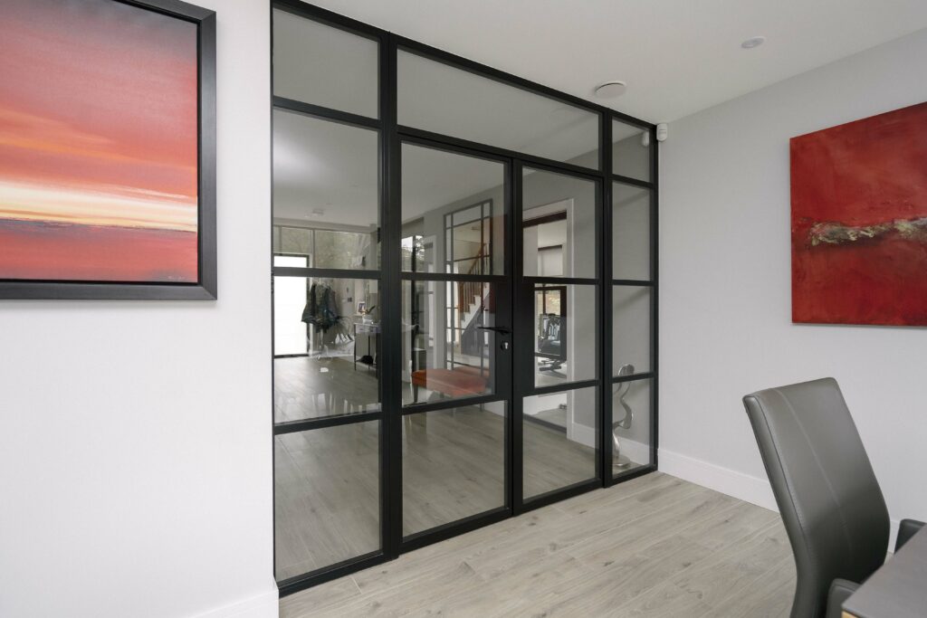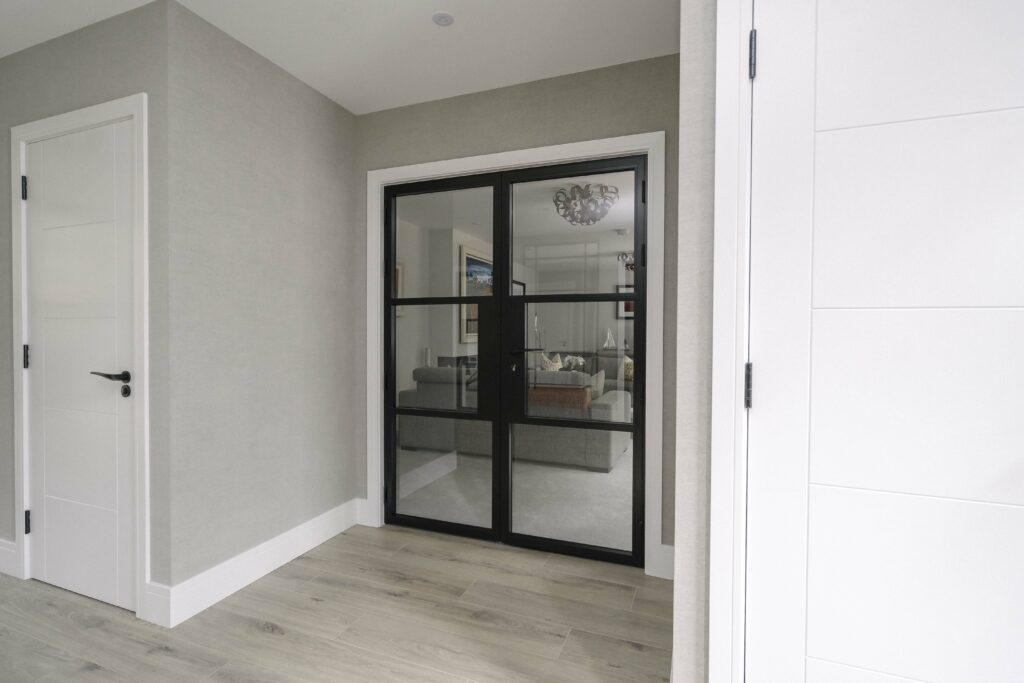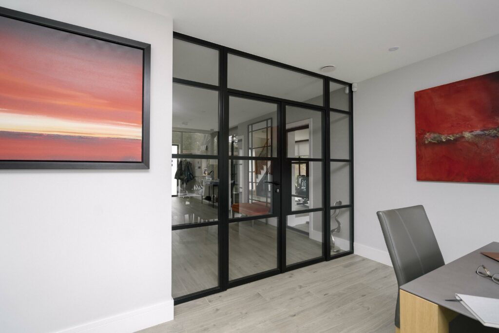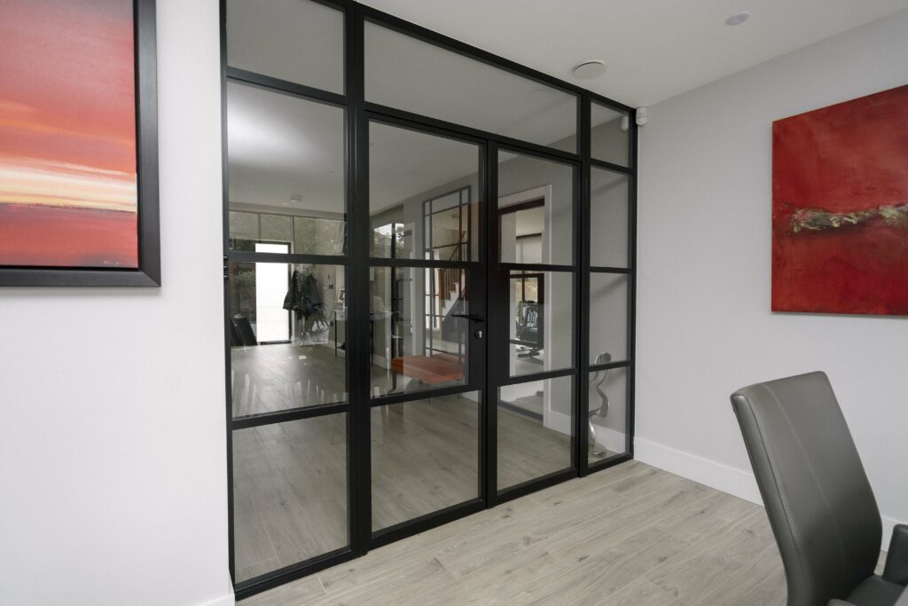 The1920s internal doors have been finished in powder-coated RAL9005 Matt Black, emphasising the’ steel’ look and offering a touch of finesse and sleekness