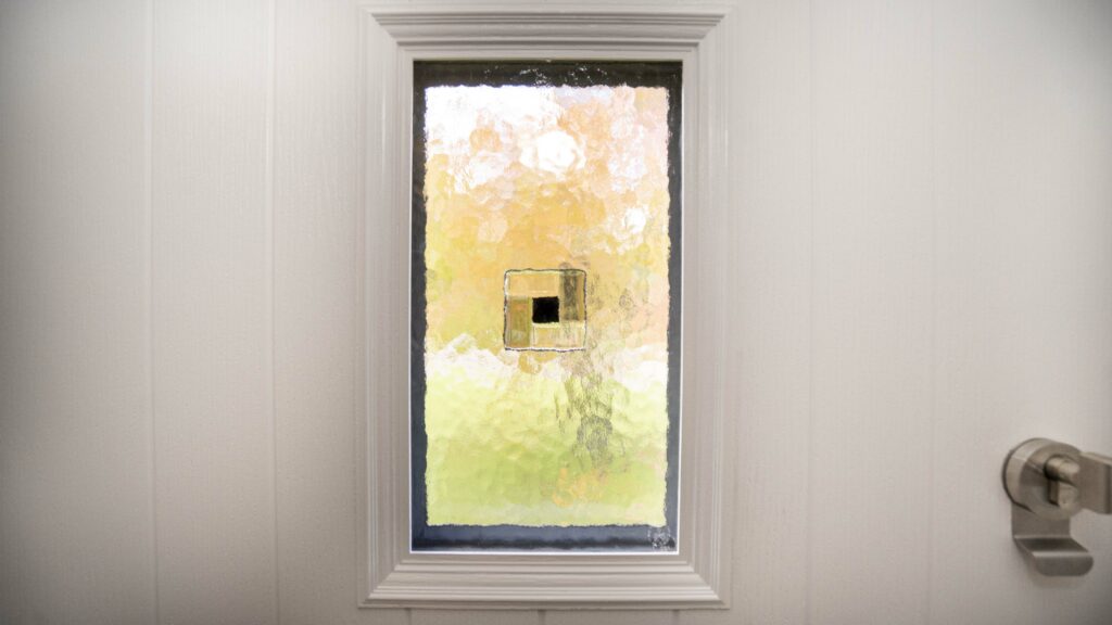 They chose a graphite bull ring knocker and a cottage-style triple-glazed square pane of rolled texture obscure glass to add to the authentic timber look of the door.