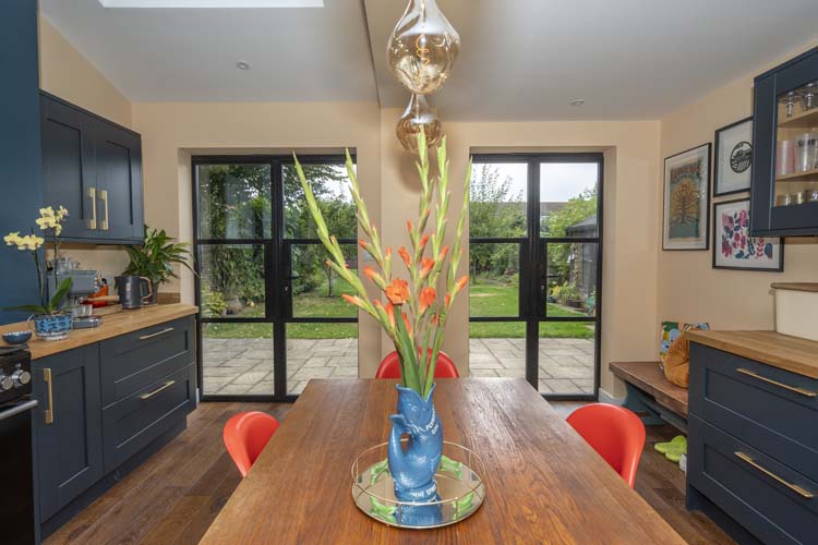 We recently installed two sets of jet-black art deco French doors into a Retro Kitchen Renovation in Winnersh, Wokingham, Berkshire.