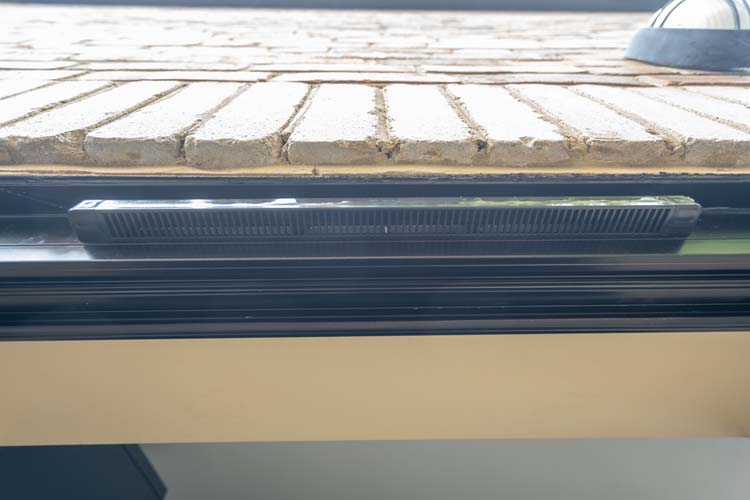 All double-glazed units are toughened, A+ rated, argon gas-filled, and have a Low-E coating with a warm edge spacer bar. They are suitable for year-round use. This ensures the kitchen remains warm in winter and cool in summer.