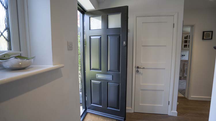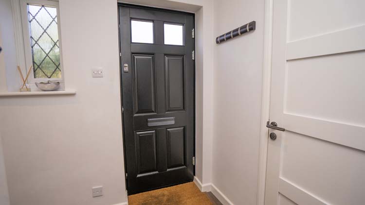 The Bracknell homeowners choose the six-panel Georgian style ‘Beatrice’ timber door with glazing finished in black RAL9005 on both the inside and outside.