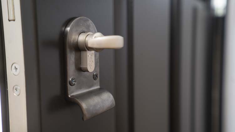 For the door furniture, they selected a black escutcheon plate finger pull for their slam shut door with a matching letter plate. All the timber door come with high- security German locking mechanisms as standard these locks are made by a company called Winkhaus.