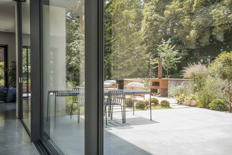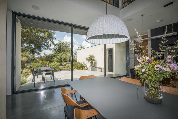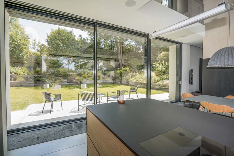This stunning contemporary new build stands as a testament to the dynamic and modern aesthetics of slim-profile sliding doors and high-performance triple-glazed concealed windows that are hard to rival.