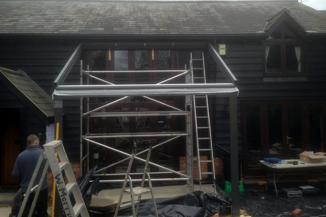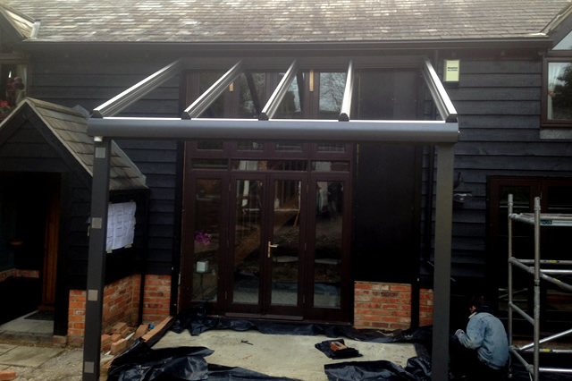 Our client in Gerrards Cross was looking to add an additional feature to a modern built barn style property but also wanted create an ‘outdoor’ room to enjoy the garden. With the majority of the plot to the front of the property, it was decided to remove the glass wall to the hallway and extend out with a contemporary glass room created with a Solarlux Wintergarden.