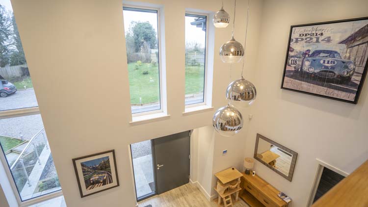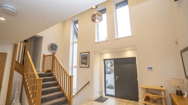 The large stairwell window is a distinctive feature that creates a stunning effect that gives the wow factor to the large hallway. The large fixed windows are aesthetically pleasing and enhance the natural flow of natural light and a vision of open space.