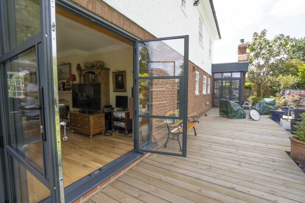 They were keen to create an industrial contrast with their traditional Mock Georgian property, using large French door doors designed with an industrial steel look, so they were eager for Thames Valley Windows to help bring their vision to life.
