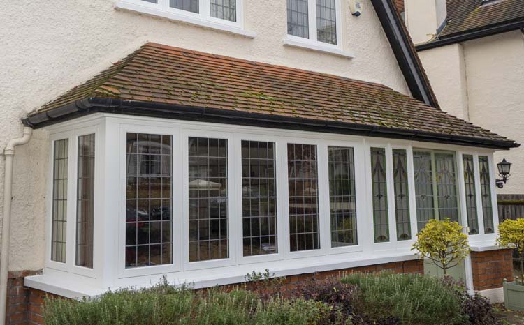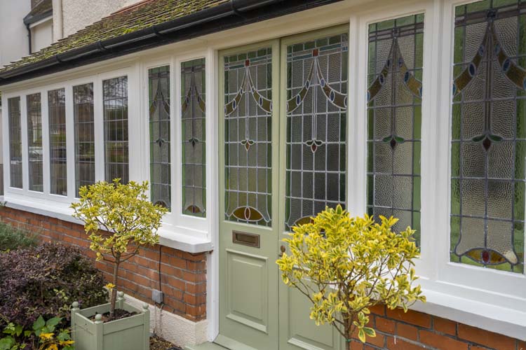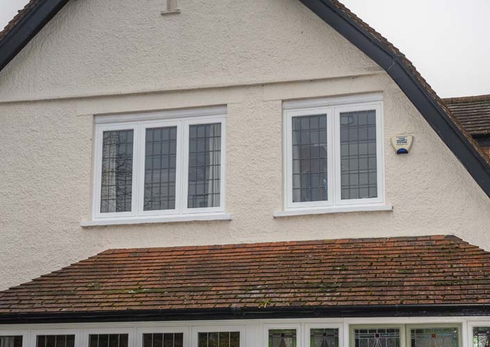 The Surrey homeowners came to us to replace the old wooden leaded windows at the front of our house with double-glazed, like-for-like casement window replacements., These would still be in keeping with the stained glass porch and sympathetic to the period features of the cream-rendered property, improving the overall U value and reducing the ongoing maintenance required.