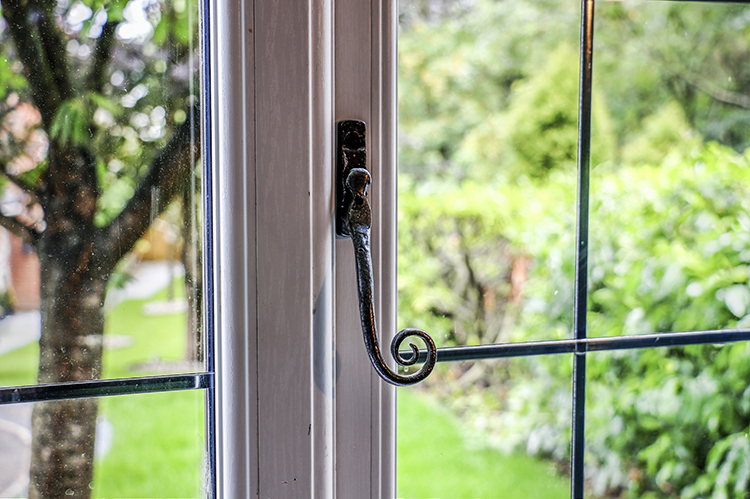 Internally, the double glazing window frames are white and finished with pewter monkey tail handles.