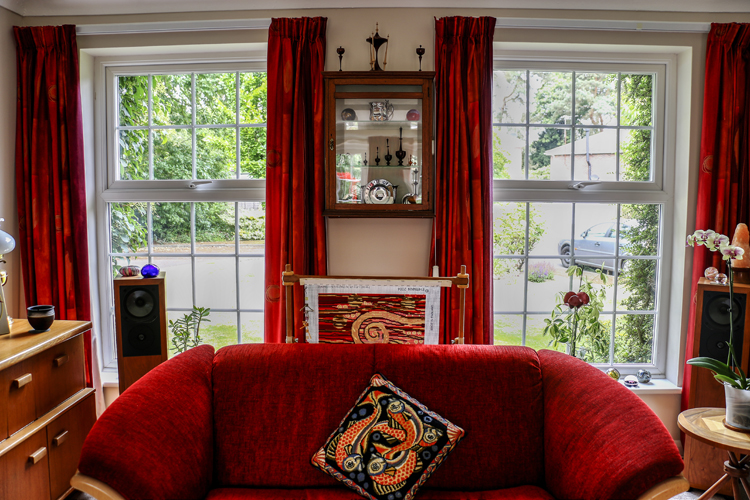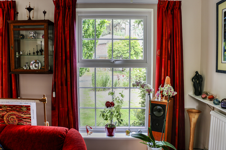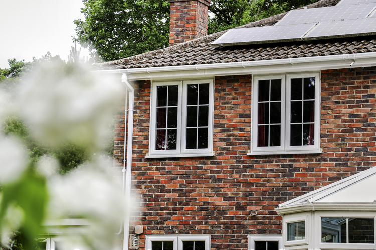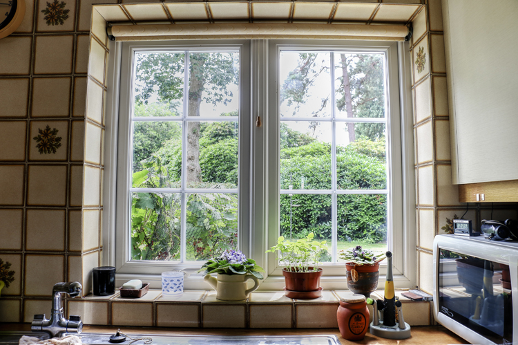 The double glazed windows at the front are top hung to replicate the look of a traditional sliding sash window. The windows at the back are side openers.