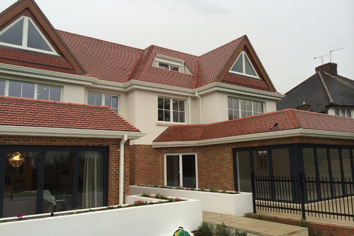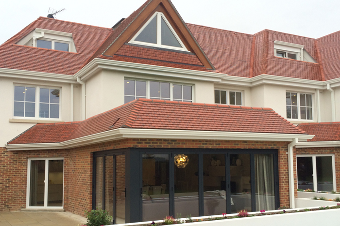Behind the property, there are two perfect single-storey extensions, that we installed Solarlux aluminium bifold doors into to provide an enhanced feeling of light and space. These were finished in a modern grey on the interior and exterior that contrasted wonderfully with the pale render and red brickwork of the property. As there was a large amount of glazing used, it was crucial that the doors did not impede the thermal performance, so the client, on our recommendation, opted for triple-glazing rather than standard double.