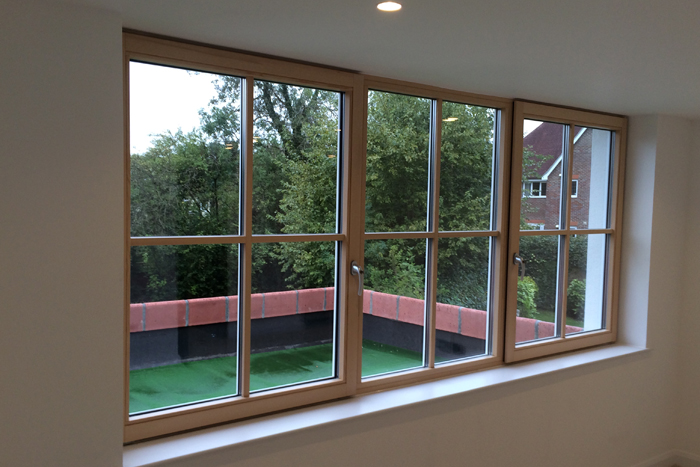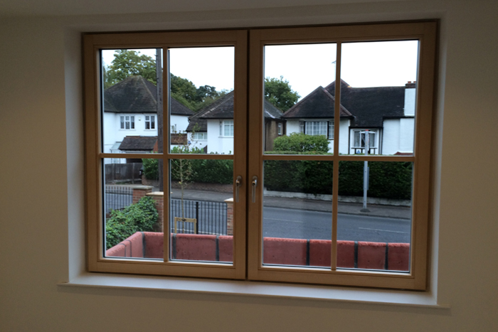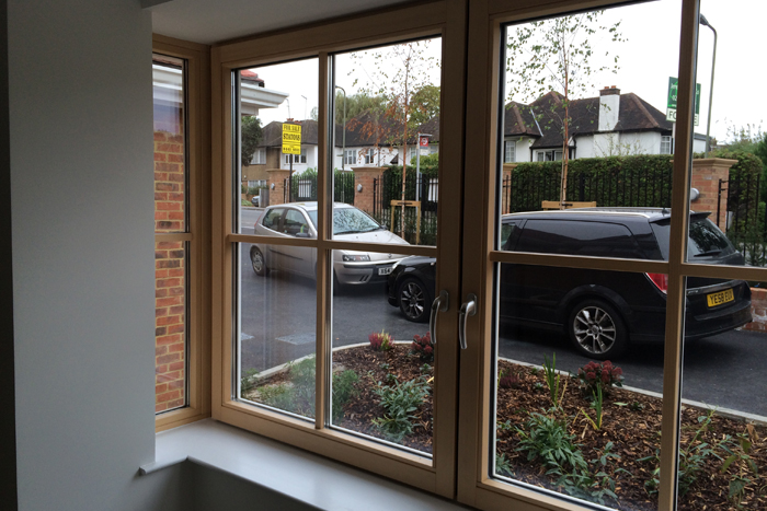 These windows have been engineered to provide especially high thermal performance and sound insulation using acoustic glass, of as much as 0.8 W/m2K and 45db respectively. The windows have a finished look of timber inside with the look of aluminium external windows on the outside. The transformation of the property was completed with the Scotia beading on the double glazing windows and doors in North London.