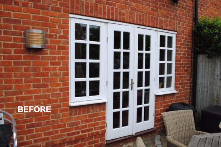 The renowned French / Olive Grey finish from Evolution on the outside gives these French Doors in Nettlebed a warmer feel and match the Evolution Timber Look windows already replaced by Thames Valley Windows. The white interior colour chosen by the owners offers a match to the interior of this property, keeping the living space bright and light.