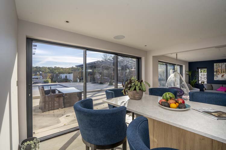 Marcus worked closely with the architects and homeowners and recommended that flush aluminium windows and Vision20 glazed sliding doors would provide a minimal contemporary look and offer impressive levels of airtightness and thermal insulation.
