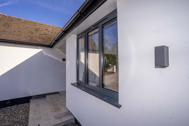 The detached bungalow is situated in a semi-rural location on the outskirts of Wooburn Green Village in Buckinghamshire. The homeowners had lived in the property for many years and were keen to radically modernise the exterior and interior to create a beautiful contemporary family home suitable for the 21st century. This included replacement windows and doors.