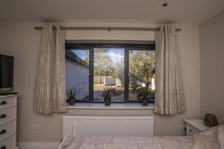 All the double-glazed units in the aluminium windows and doors are argon gas-filled, warm edge spacer bar and Low-E coating that exceeds building regulation standards, creating a highly sustainable and functional family home with a low carbon footprint that will help to reduce energy bills.