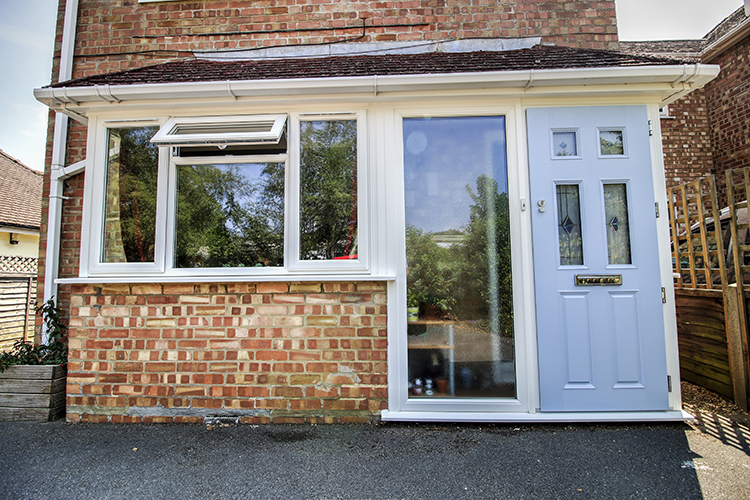 The large window to the left of the front door is made up of toughened glass and lets light flood in to the porch area.
