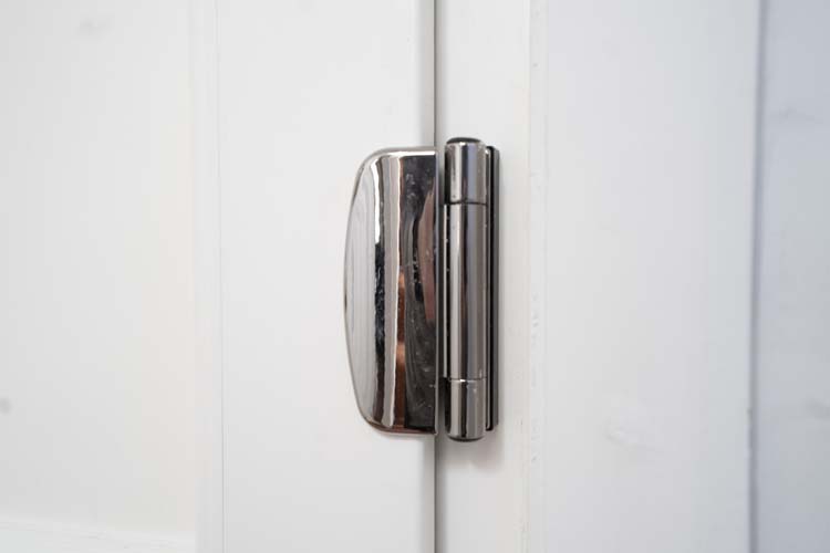 The timber alternative front door is finished in ‘Olive grey’ on the exterior and white on the interior to provide a clean ambience, keep the hallway light and bright, and complement the contemporary décor.