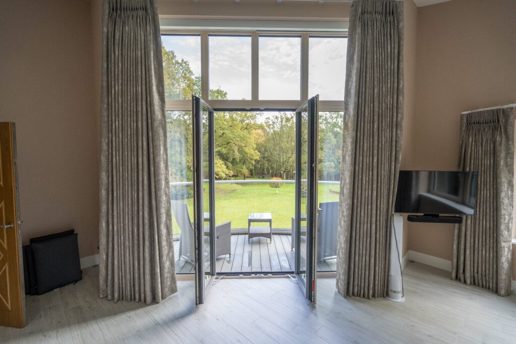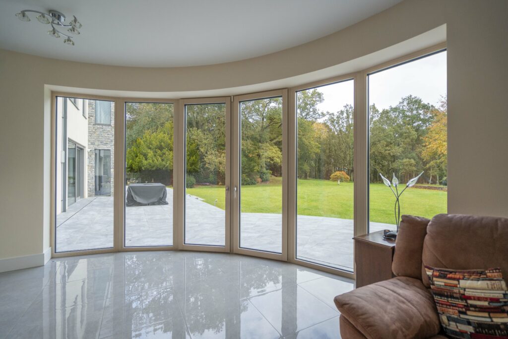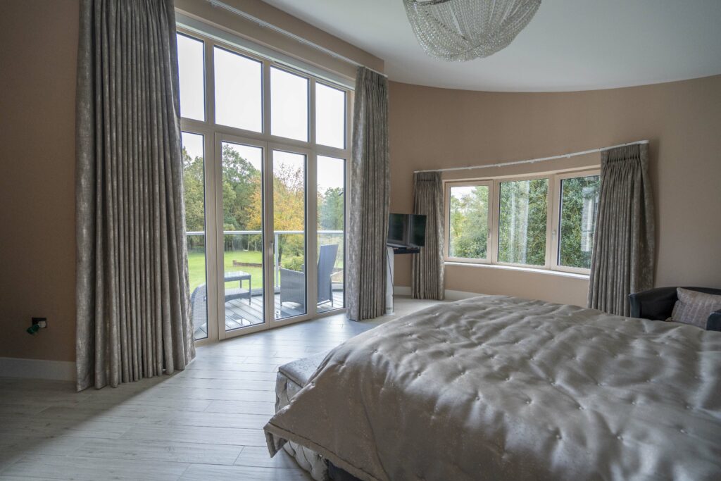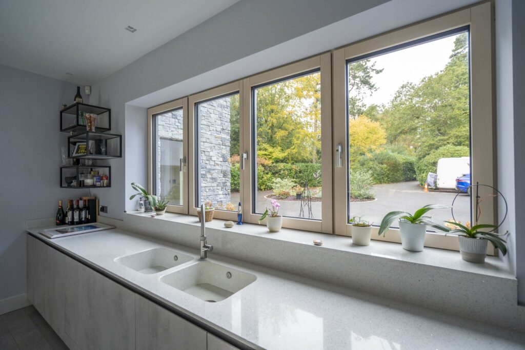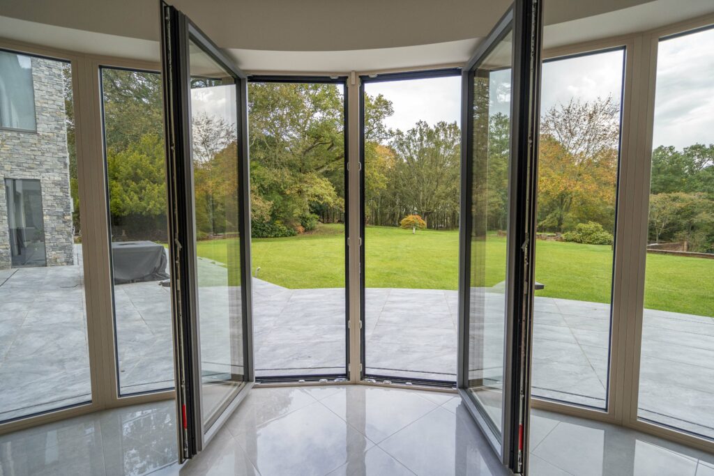 In addition to installing high-performance grey triple-glazed windows into this Finchampstead New Build , we also installed Solarlux Combiline Bifold doors into the kitchen, and Air 500LS into the 2nd floor bedroom, and a Pirnar entrance door.