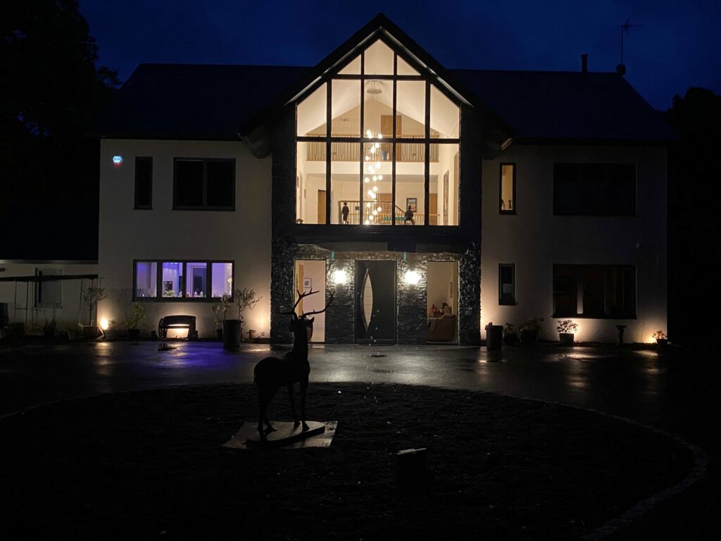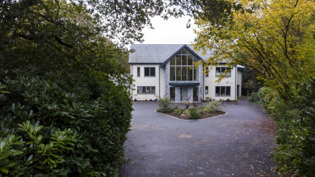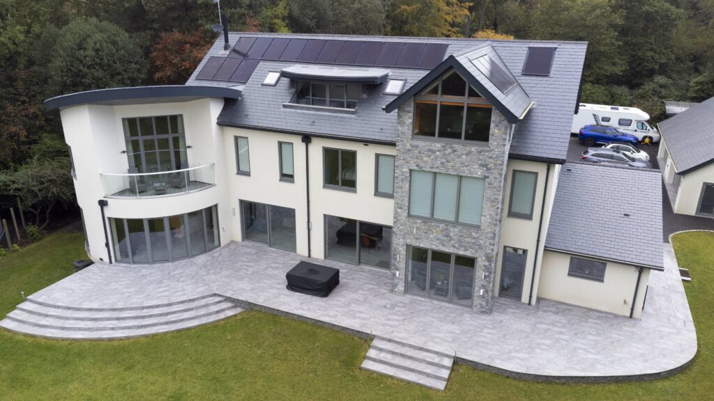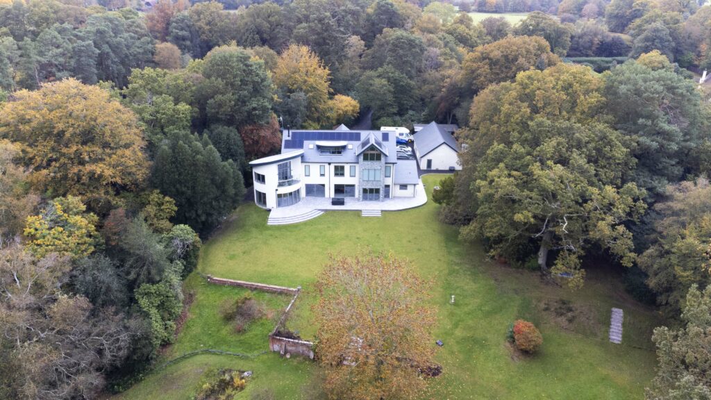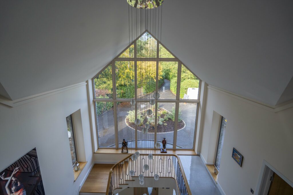 This stunning bespoke contemporary detached property has been designed to the very highest specifications by a local architect and purpose-built by a construction company. The brief was to replace an existing property with ‘an energy-efficient modern family home with extensive use of glass throughout to allow ample natural light to flow through the building.’