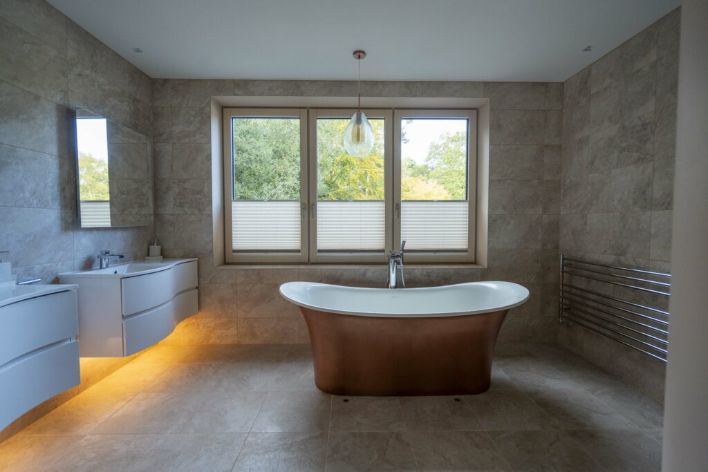 Overall, this Finchampstead new build is the epitome of luxury. It has been designed and built as an energy-efficient family home with modern, large, grey triple-glazed windows and doors.