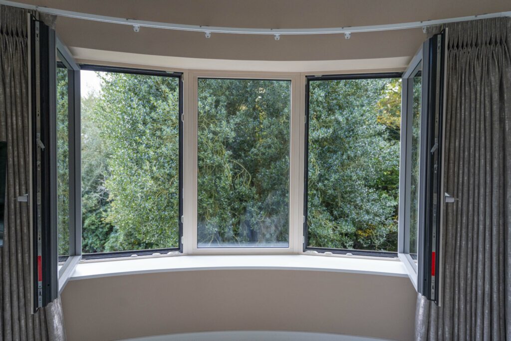 All the window frames have been hidden into the walls to maximise the glass area and give the appearance of a virtually frameless window, offering an unobstructed view and transparency.