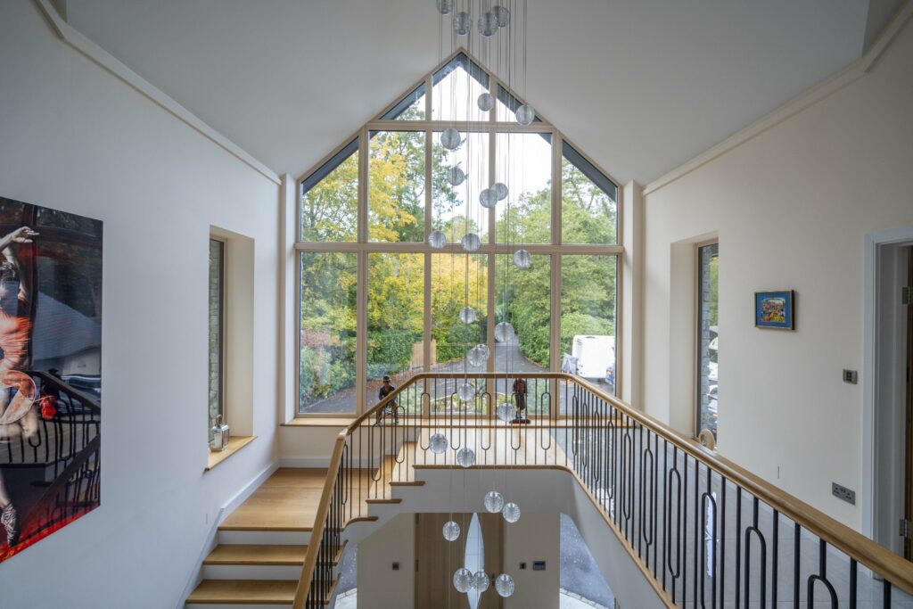 The end result is exceptional. The new build embraces both contemporary and classic design features; triple-glazed windows and doors by Internorm complement cream-coloured k-renderers, and the prominent façade glass-fronted gable glazing set in traditional delabole stone facade is a striking feature that adds the wow factor to the Wokingham new build.