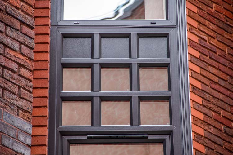 The property firm managing this project was keen to install a colour Halo uPVC window in Cambereley that matched the surrounding façade of other businesses and the existing front entrance to the property, previously installed. They were invited to visit our showroom in Bracknell and meet with our designers, gain understanding of the various design solutions we can offer and get a feel for what would best meet their needs. Our clients chose a dark grey finish on the outside and white grain internally, ensuring maximum potential of light reflection indoors.