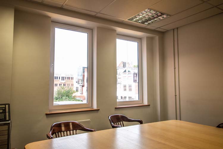 Some windows added are of the uPVC tilt and turn style and have added quite a nice touch to this standard office space in, Camberley, allowing in natural light and fresh air at the turn of a handle. Uniquely, our designers matched window replacements for a port hole and a bespoke oriel featured bay window which extended over 2 floors of the building. All windows have trickle ventilation, allowing air to flow through at all times.