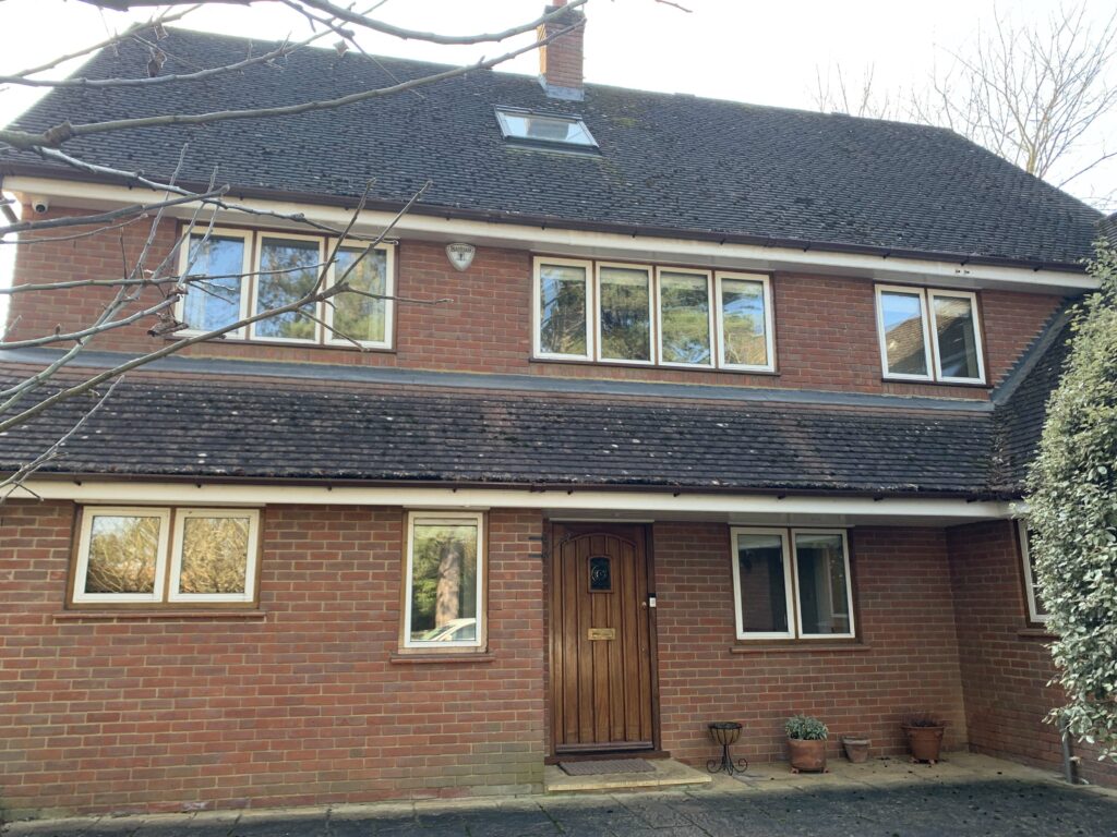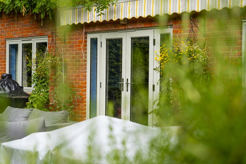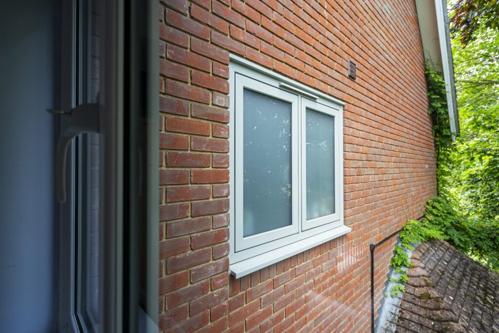 This lovely detached home in Henley-on-Thames has been transformed with new factory-finished slimline dual colour uPVC Windows, an open-in residential door for the utility, and open-out French doors for the lounge. In total, we installed twenty-six windows throughout the property. These dual-coloured window frames are incredibly durable and resistant to warping and cracking.