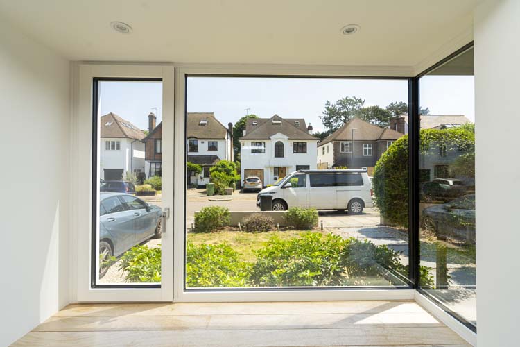One of the distinctive architectural design features of this Teddington house is the wonderfully designed frameless glass-to-glass corner bay window, which creates a dynamic focal point and adds the wow factor to the front of the house.