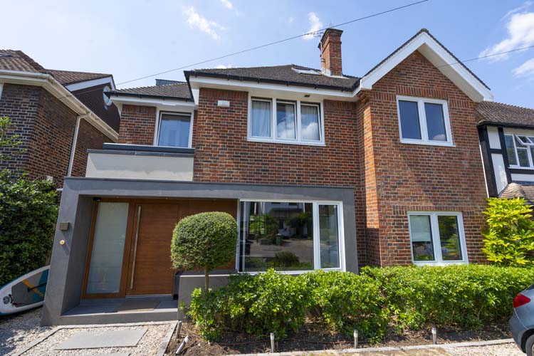Located in Teddington, Richmond, upon Thames, this lovely detached property had all of its glazing replaced with high-performance white aluminium/timber composite windows from the Internorm Studio range.
