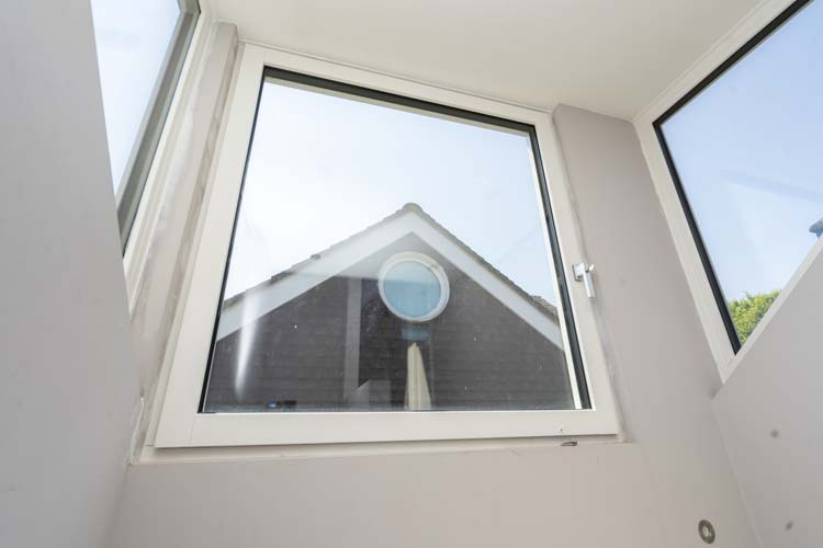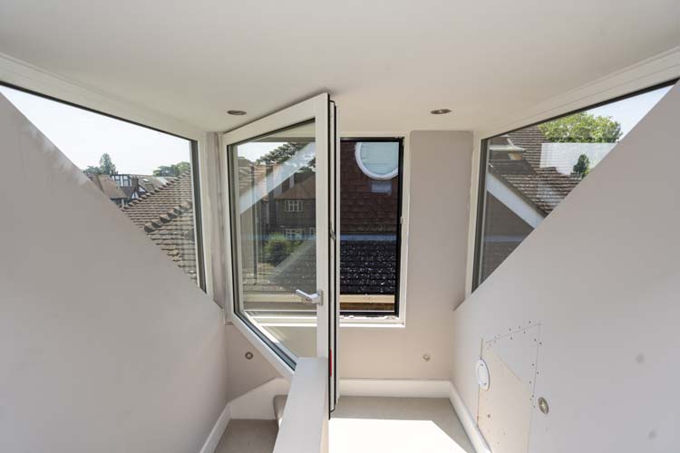 The main challenge during this installation was a large window and two shaped windows to the side elevation; scaffolding was essential for safely installing the windows at roof height.