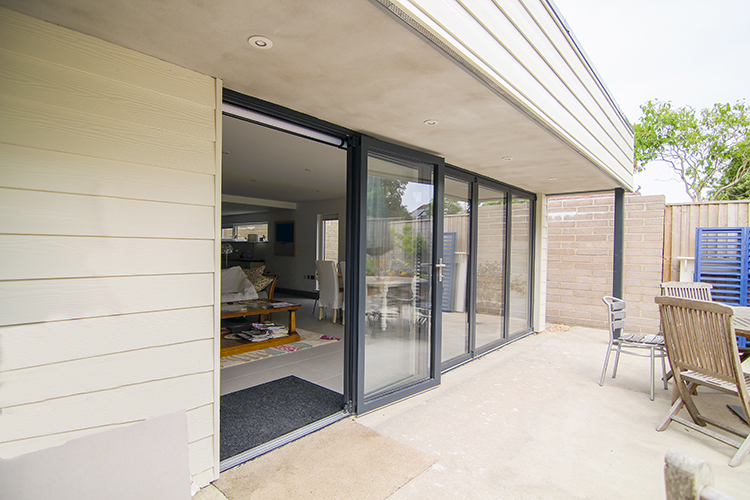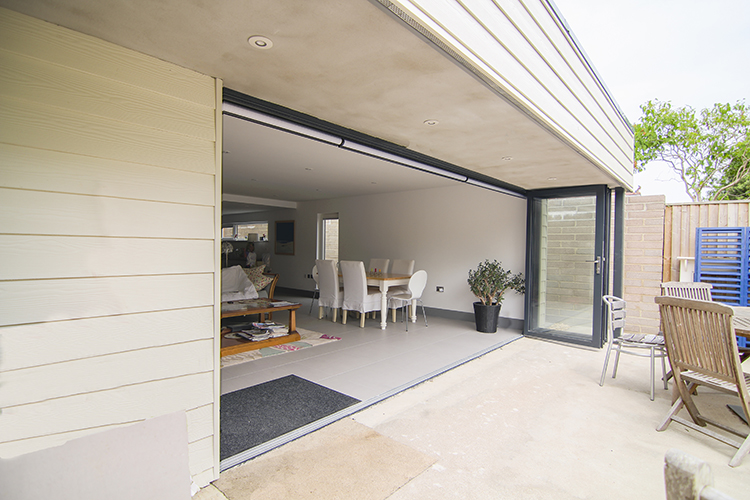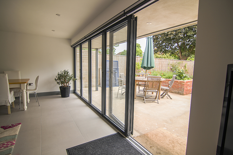 This home has a lovely open-plan space downstairs which has been fully maximised with the addition of Solarlux SL 60e 5-panel bi-fold doors. An odd number of leaves makes it possible to have one leaf open like a standard door – ideal for quick and easier access to the garden or if you have pets or children popping in and out. The flush track creates a seamless transition and avoids any tripping hazards.