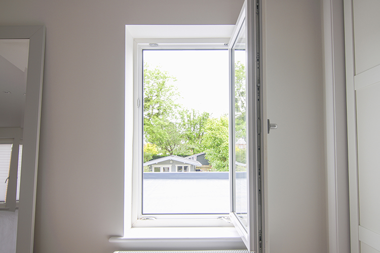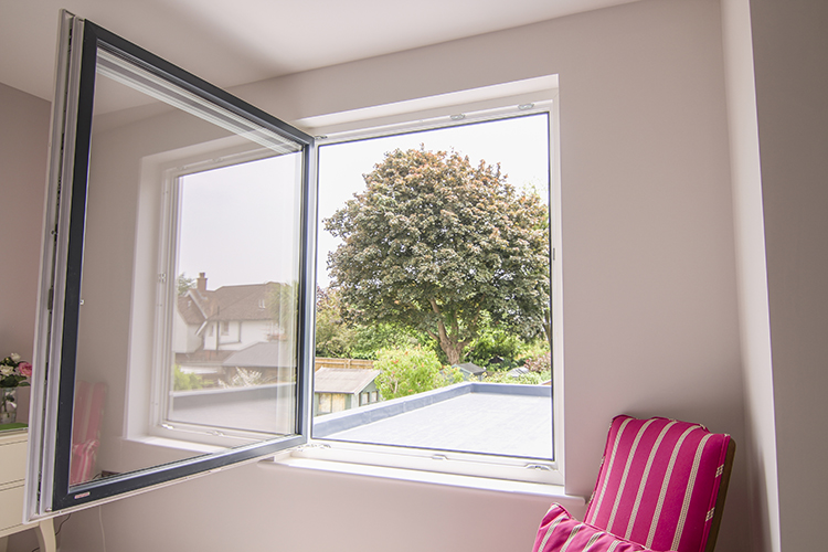 We also installed double glazed uPVC/aluminium composite windows from Internorm’s Home Soft range, with tilt & turn opening. The main benefits of the tilt and turn windows are secure night time ventilation when the windows can be tilted and locked in position allowing air to flow in and out. It also makes for much easier cleaning of the glass. The windows are opened inwards so no need for ladders where the windows are on the first floor or above.