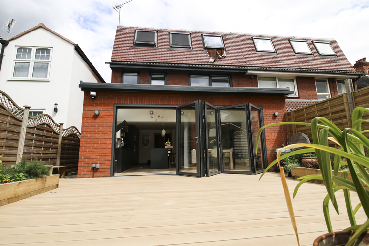 We also installed a set of Solarlux SL81 Bi-Folding Doors with flush track at the rear of the property. The 5 panels fully open up on to a decked area. A traffic door can be opened for when you need to pop in and out.