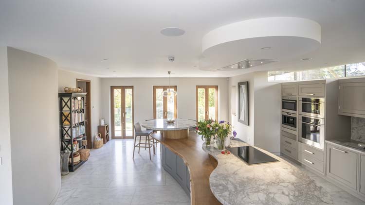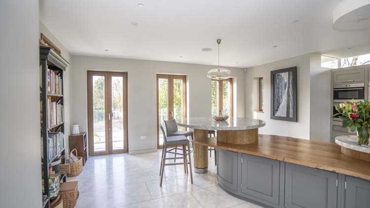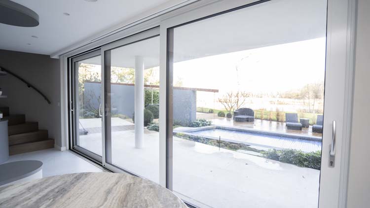 With a variation of casement sizes, the Internorm HF410 studio windows add to the sense of space and light throughout. Some of the windows in the Windsor property are the uPVC/aluminium tilt and turn design, creating better functionality for the space in which they are used. Internorm high-performance HF410 timber aluminium windows and doors have been installed into the open plan kitchen space. The sliding doors at the rear of this new build create a wow factor and offer spectacular views of the river.